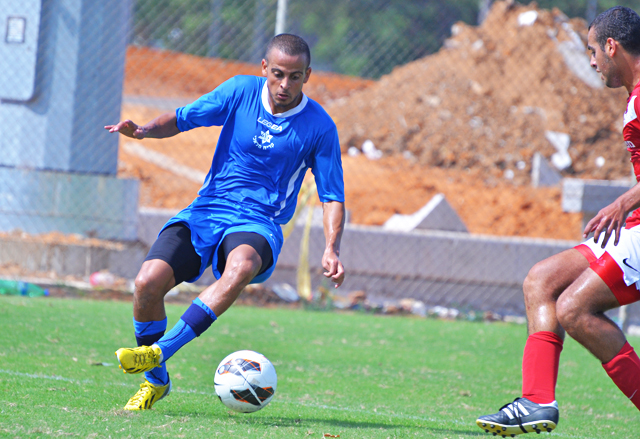 לי זליאט הבולט במגרש, מניף את רגלו לבעיטה.(צילום:רמי גרידיש)