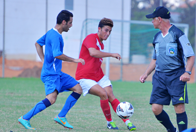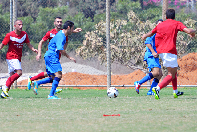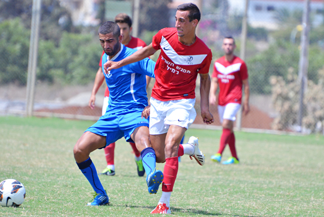 אוהד יוסף בלמה של מלאכי צמוד לחלוצה של הרצליה.(צילום:רמי גרידיש)