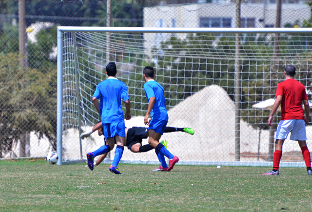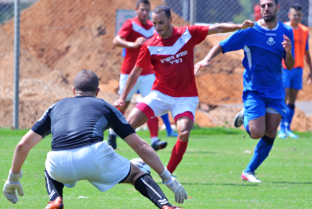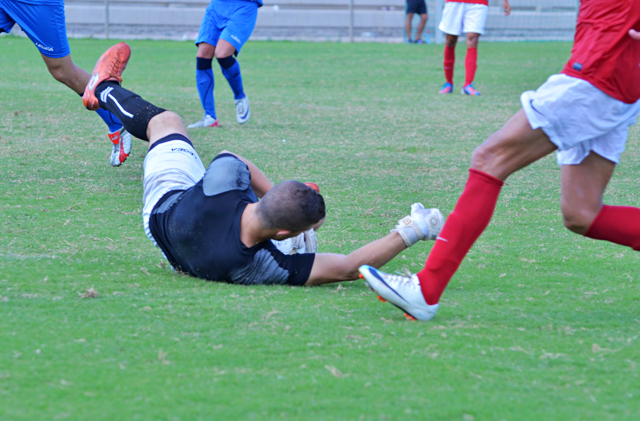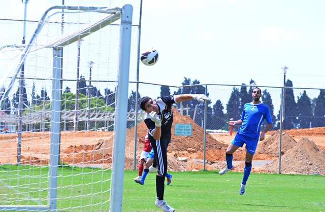 שוערה המחליף של מלאכי,מתעופף לכדור.(צילום:רמי גרידיש)