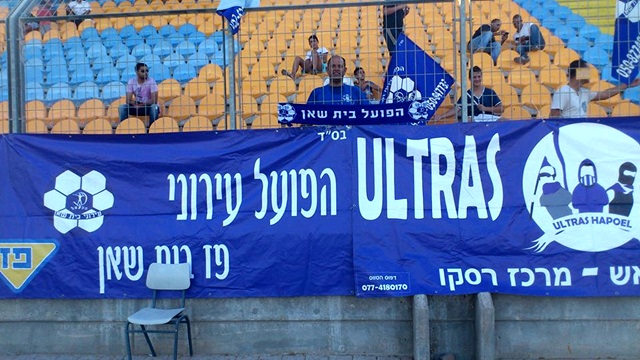 הקהל של בית שאן ערוך לפתיחת הליגה, עם דגלים חדשים ועוד אביזרי עידוד (צילום: באדיבות חיים לוי)