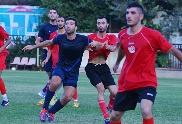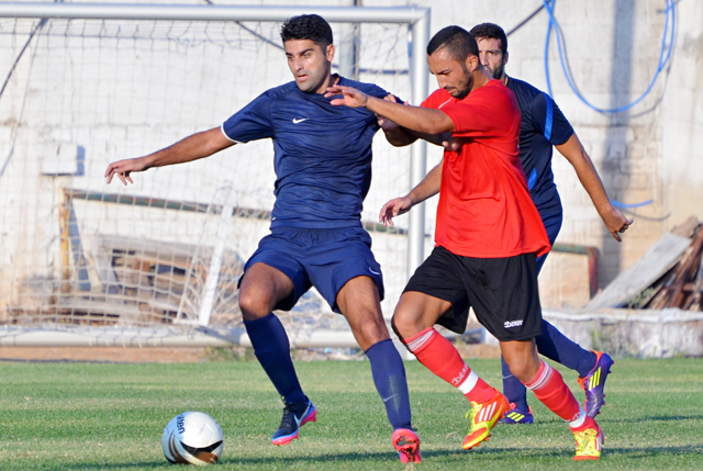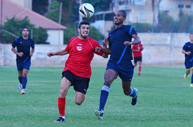 יוסי זאנה ואדיר שערבני במרוץ אחר הכדור. (צילום:רמי גרידיש)