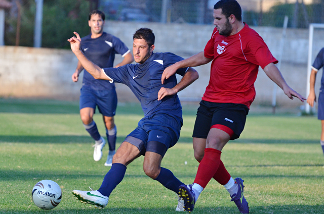 אלירן שחר והגנת מרמורק מוכנים לכדור גובה, הקפטן הצעיר לוקח מנהיגות במרכז המגרש. (צילום:רמי גרידיש)