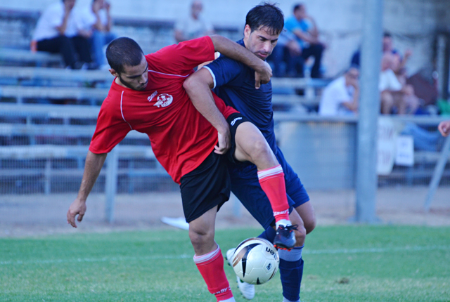 דרור ויצמן ויניב עמיאל במאבק על הכדור.(צילום:רמי גרידיש)