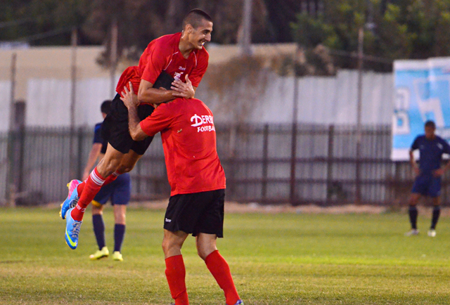 שחקני מרמורק חוגגים, הסגל הצעיר של מרמורק מתחיל להתחבר. (צילום:רמי גרידיש)