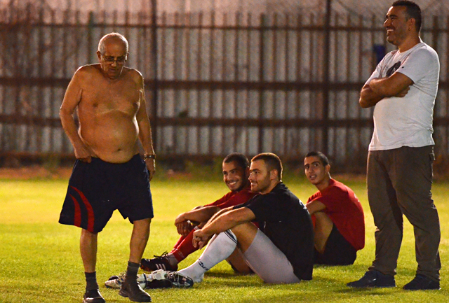 חנן עדני בלבוש המסורתי.... טרוד היכן ייערך הדרבי מול שעריים. (צילום:רמי גרידיש)