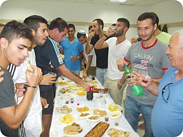 שחקני בית שאן בהרמת כוסית. (צילום: יצחק סולומון)