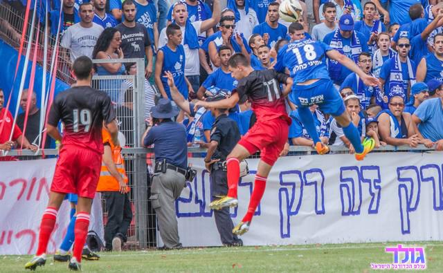 דרור ויצמן הפעלתן פורץ באגף ימין, יאיר אזולאי משגיח מקרוב.(צילום:רפי נחמיאס)