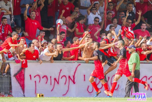 בן חיון חוגג עם אוהדי מרמורק. סיפתח (כמעט) מושלם (צילום: רפי נחמיאס)
