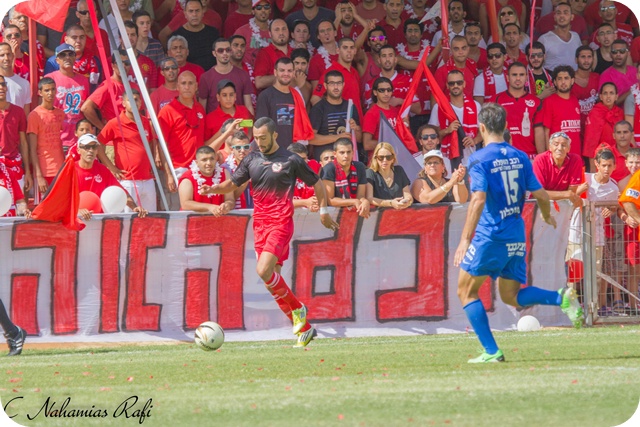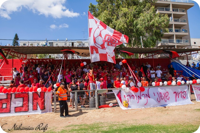 אוהדי מרמורק. תצוגת עידוד מרשימה של הקהל באדום.(צילום:רפי נחמיאס)