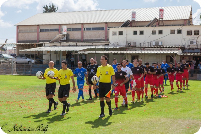 שחקני שתי הקבוצות עולים לכר הדשא.(צילום:רפי נחמיאס)