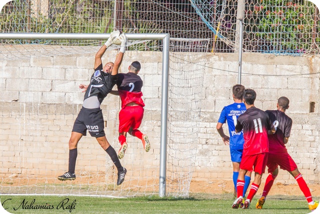 יותם זיגדון שוערה של שעריים ראשון לכדור גובה. זיגדון היה הבולט במגרש.(צילום:רפי נחמיאס)