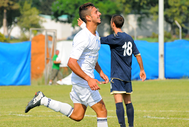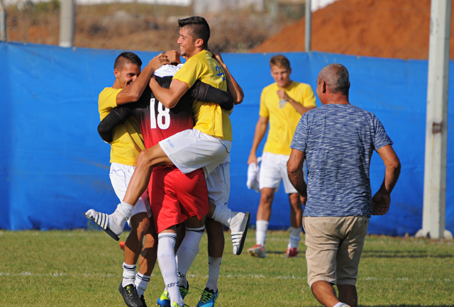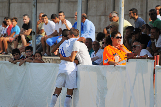 ויטלי מקבל חיבוק חם לאחר הבקעת השער. (צילום: רמי גרידיש)
