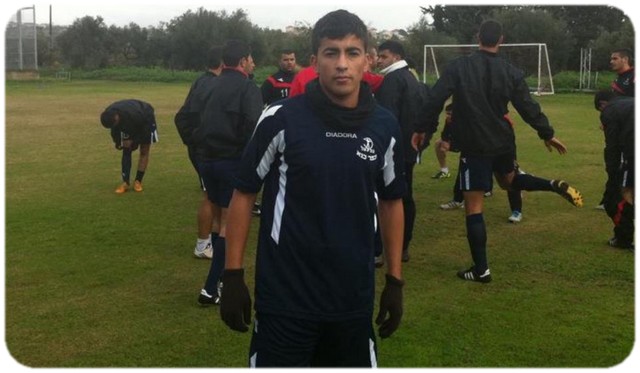 מוהנד חטיב במדי כפר קנא. "אם נהיה בצמרת זה יהיה בונוס" (צילום:עלאא בדרנה)