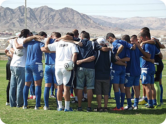 שחקני יפו עוטפים באהבה את כהן צדק. היפואים מוכנים לליגה.(צילום:פרנסיסקו דיסטסיו)
