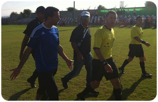 מאמן אולגה אייל עמר בא בטענות לשופט ארנס דוקה (צילום: אורי דוד)