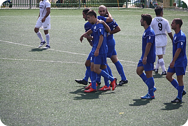 מודיעין חוגגים את השער הראשון של אסי אסולין. (צילום: פזי שינדלר)
