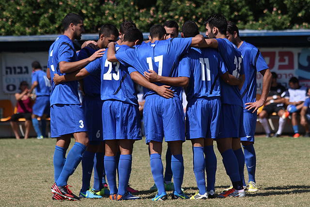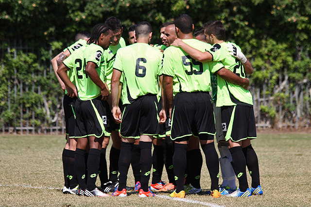 שחקני בית שאן מתייחדים לפני תחילת המשחק.( צילום:לילך וייס)