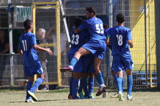 שחקני בית שאן חוגגים את השער השני.(צילום: לילך וייס)