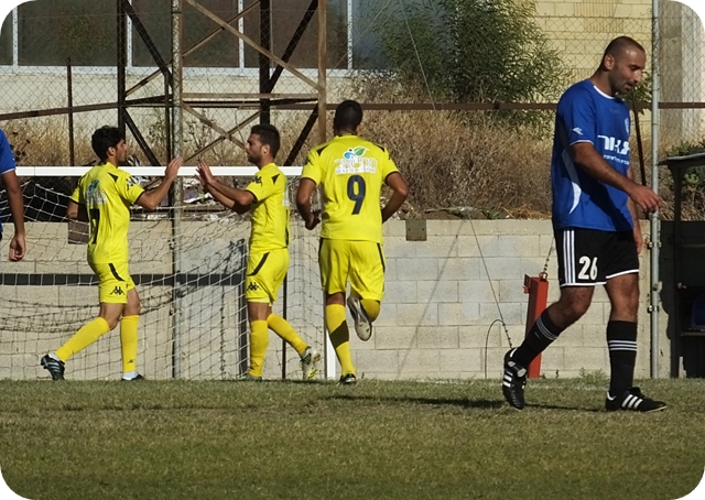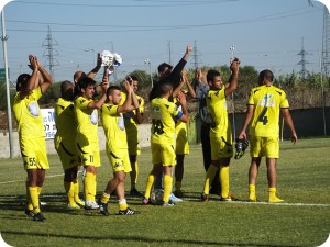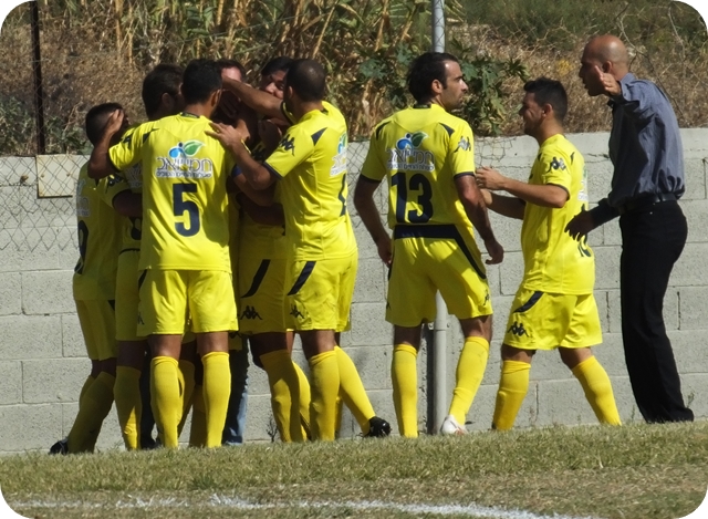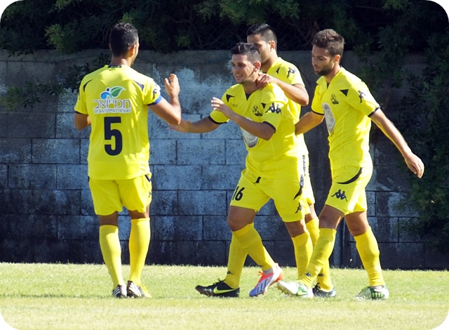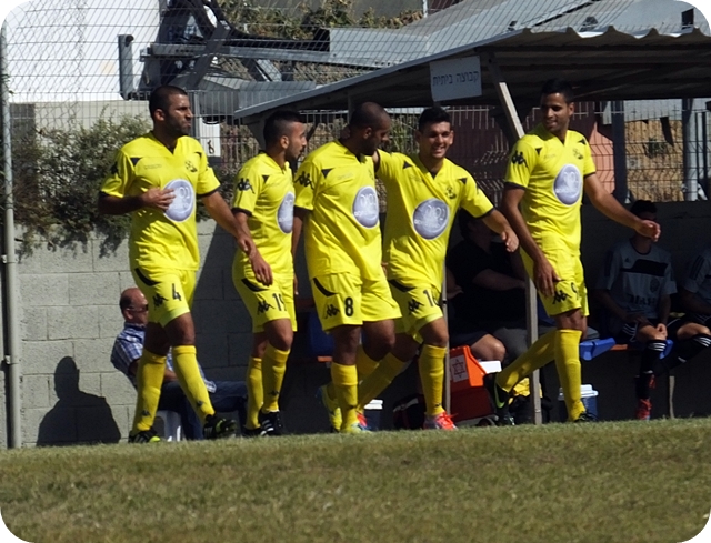 שחקני קריית גת, חוגגים את השער הראשון. (צילום: אביחי חיים)