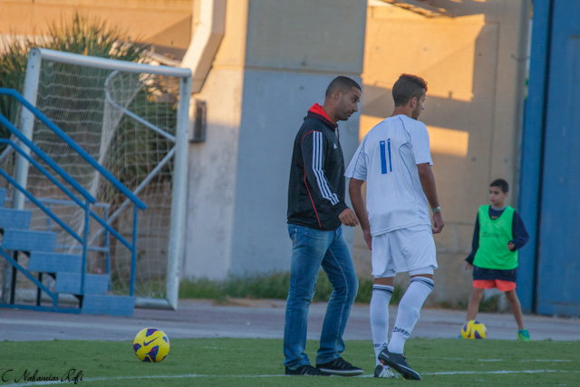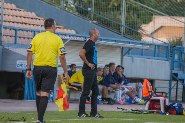 נמרוד קוסטיקה מתדרך את ויטלי גנון. משחק חלש של בת ים.(צילום:רפי נחמיאס)