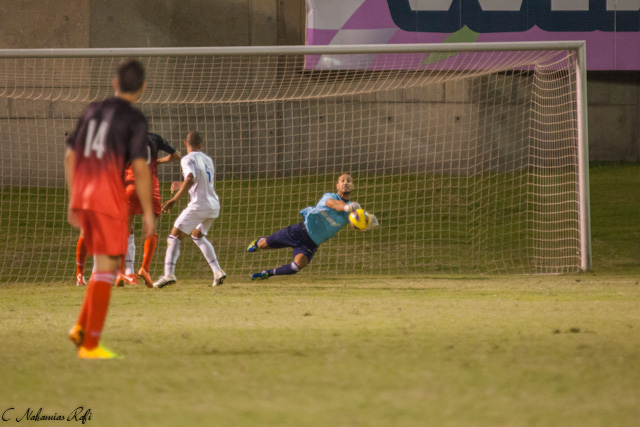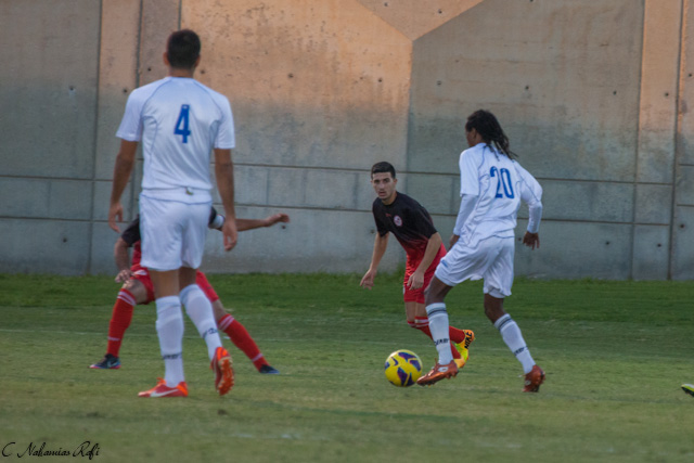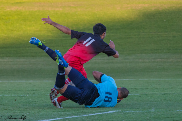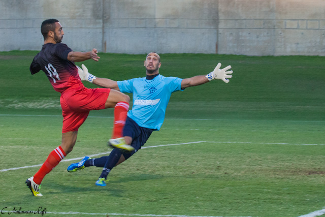 דרור ויצמן מפספס את הכדור. למל דרוך ומוכן.(צילום:רפי נחמיאס)