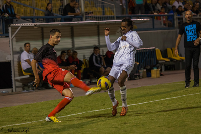מאור אוחיון גולש לעברו של מישל רוס.(צילום:רפי נחמיאס)