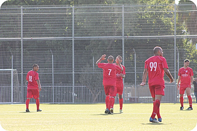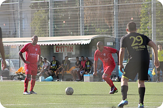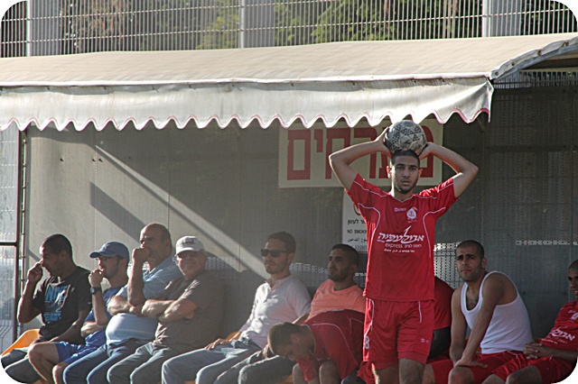 פאדי קדירוב (פישונט הישראלי) כבש שער נאה מעל לשוער פ"ת. (צילום: היאם אזברגה)