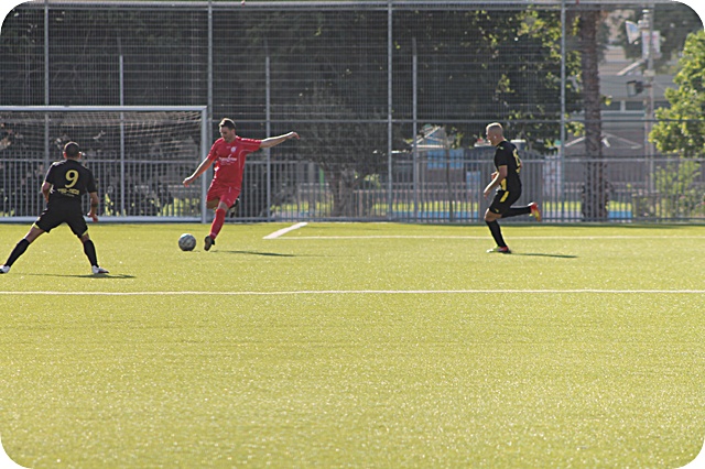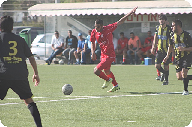 הפנדל המוחמץ של יוסף. השוער הדף הישר לרגליו, ומשם כבש בקלות. (צילום: היאם אזברגה)