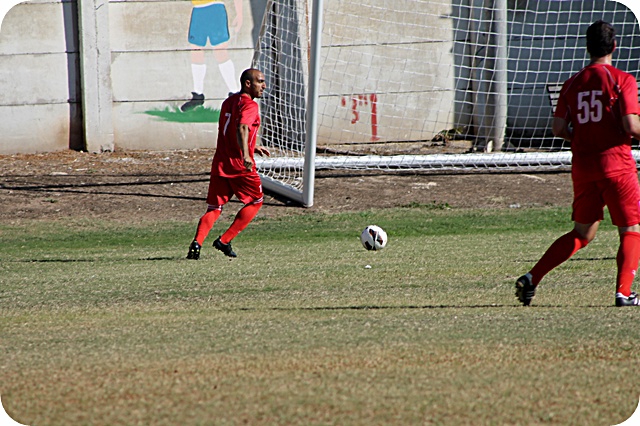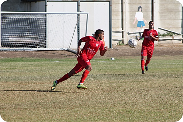 עאמר יאתים, מגן/בלם של יפו מוציא את קבוצתו לעוד התקפה...(צילום: היאם אזברגה)