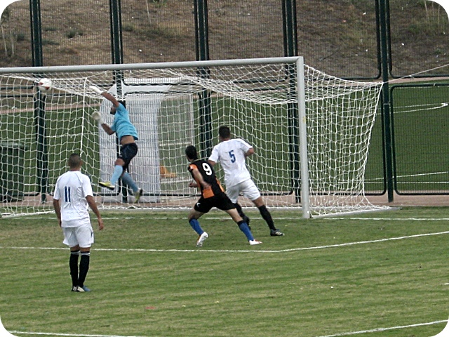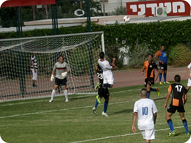 דקה 4 – ברוכין (המצטיין במלאכי) פורץ משמאל ומגביה לרחבה, אך אלקיים נוגע מעל השער.