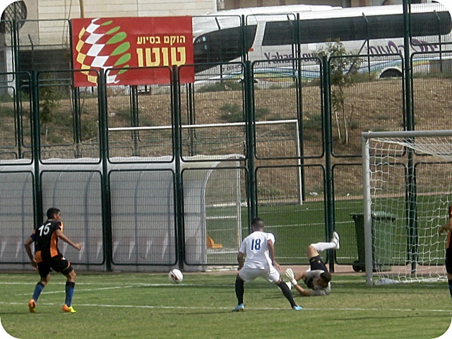 דקה 32 – אסי בוזגלו מתקדם לבדו לעבר שער באר שבוע, אבל בועט חלש מאוד לידיים של השוער.