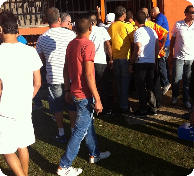 הקהל היפואי על הדשא, מול חדר ההלבשה של באר יעקב. (צילום: אביחי חיים)