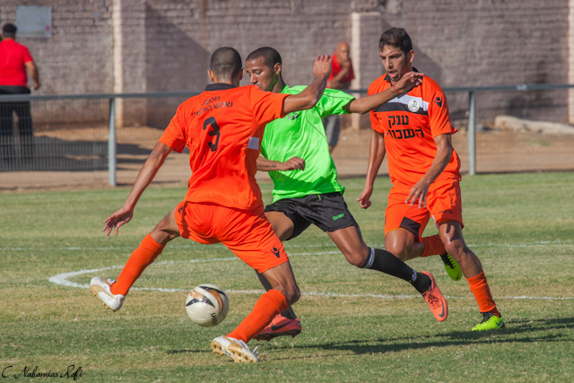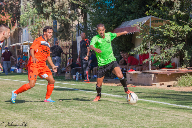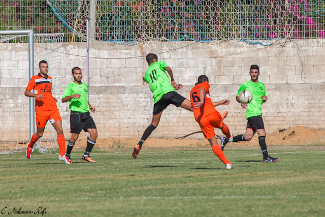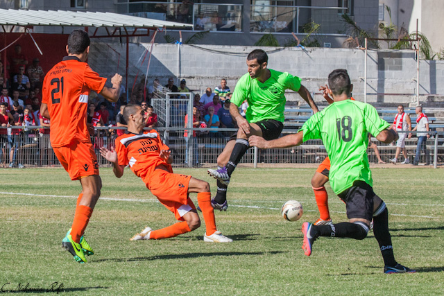 אוחיון כובש מול גלברט. התקפה מרשימה של כפר שלם.(צילום: רפי נחמיאס)