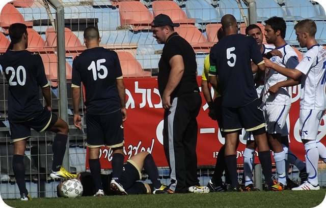 שחקני יפו באים בטענות לבזבוז זמן. (צילום: אביחי חיים)