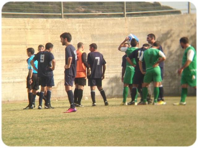 השחקנים בהפסקת שתייה. היה חם (צילום: עלאא בדרנה)