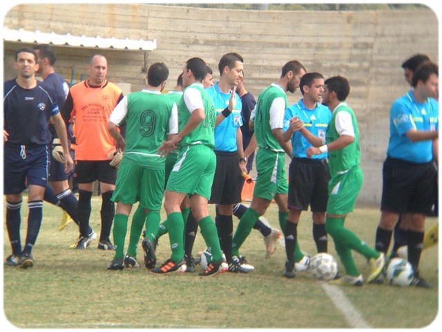 השחקנים לוחצים את היד של השופט (צילום: עלאא בדרנה)