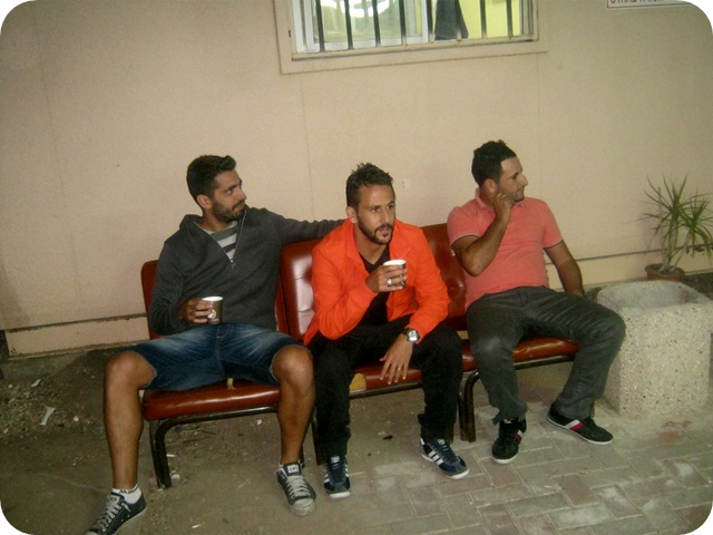 שחקני הקבוצה עם הכוס תה. (צילום: שמיל איובי)