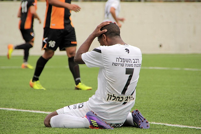 חיזקי טייה תופס את הראש לאחר ההחמצה (צילום: איתמר מורז)