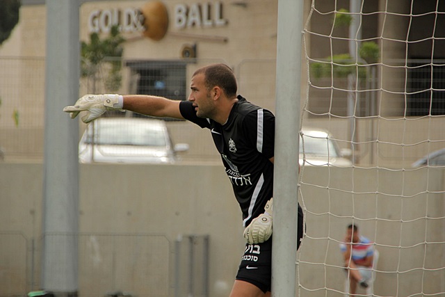 רן קדוש, הפגין התנהגות ספורטיבית, למרות המצב התייצב בין הקורות (צילום: איתמר מורז)