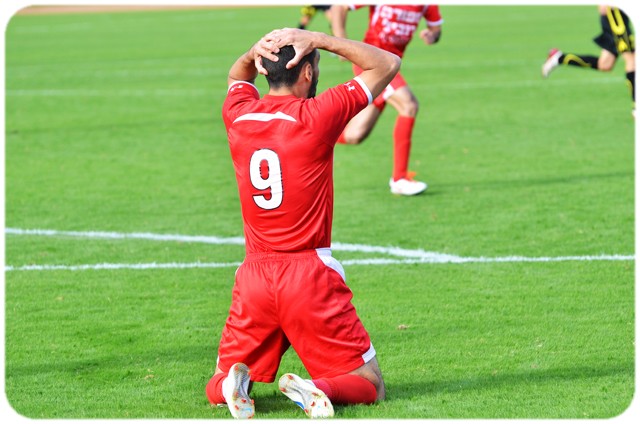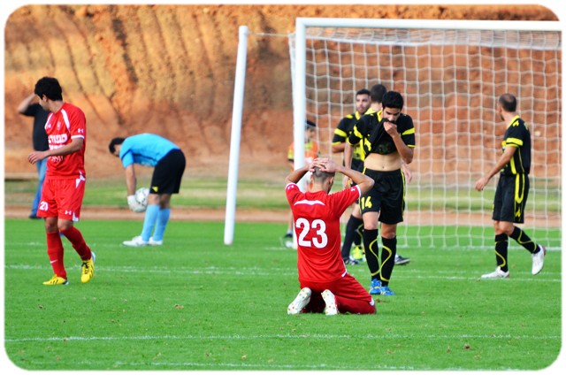 שחקני כפר קאסם מאוכזבים אחרי עוד החמצה. (צילום: רמי גרידיש)