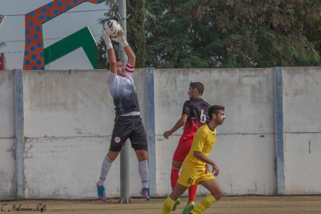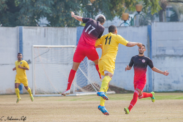 אור אלקבץ ואלירן מגול במאבק אוירי. אלקבץ חזר להרכב לאחר פציעה ושמר על רשת נקיה,מגול בדרך לאתגר הבא.(צילום:רפי נחמיאס)