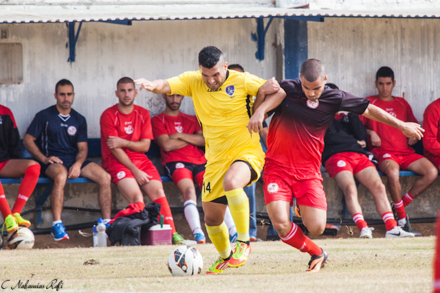 אביחי ממן לוחץ את אלירן מגול. הופעת בכורה מוצלחת לקשר הצעיר במדי מרמורק.(צילום: רפי נחמיאס)