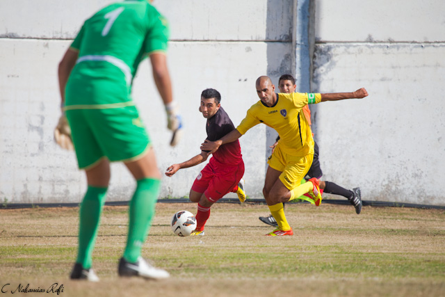 שי גבאי גולש לעברו של קומרקוב. הקפוטן הותיק של באר יעקב מחוזר ע"י מודיעין.( צילום: רפי נחמיאס)