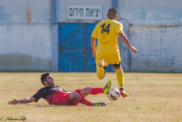 אלירן שחר גולש לעברו של עידן סרור. ( צילום: רפי נחמיאס)