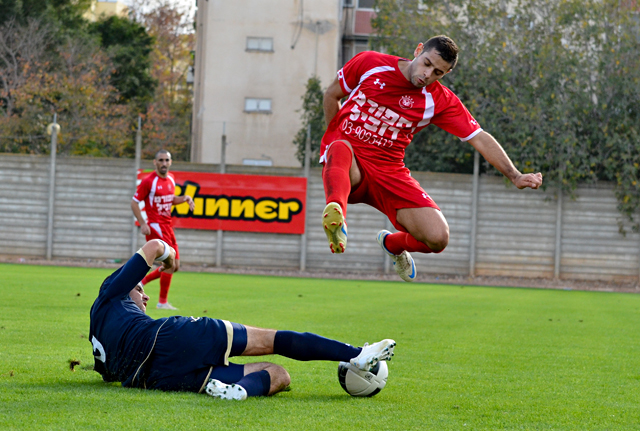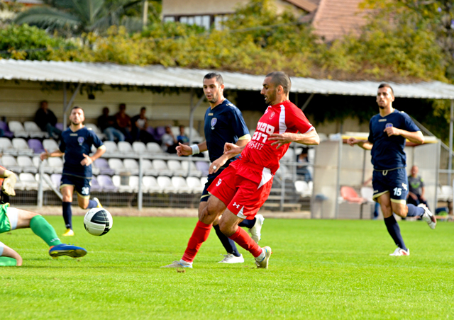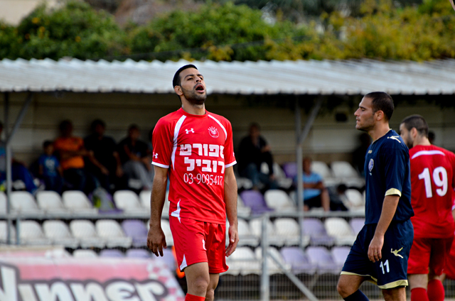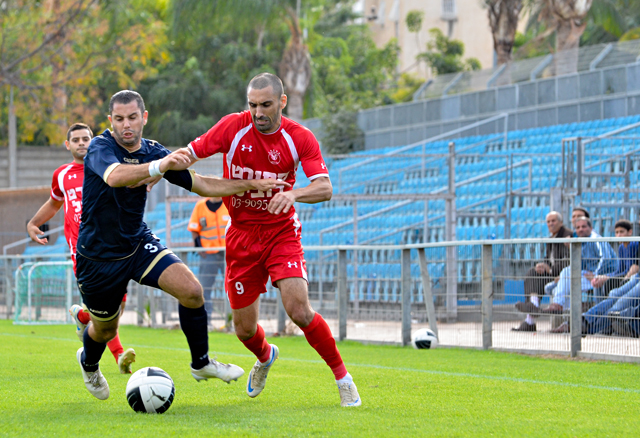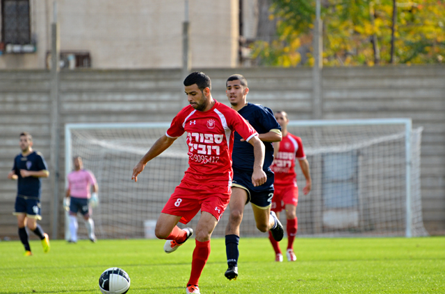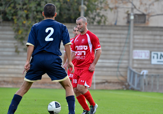 רוביל סרסור, החלוץ המצויין של הכפר לא מצא השבוע את הרשת אבל בישל לאלעד כהן שער יפה..(צילום: רמי גרידיש)