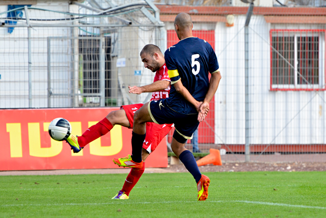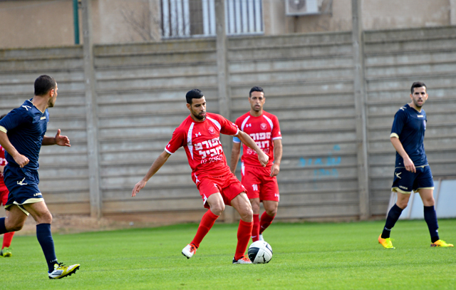 אלעד כהן במאבק על כל כדור. היה מצויין מול באר יעקב (צילום: רמי גרידיש)