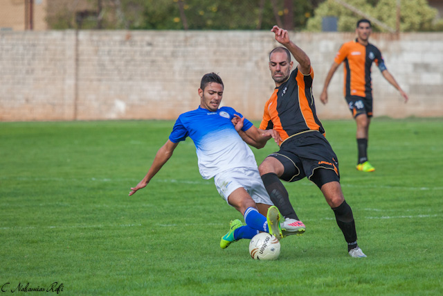 עדי מרציאנו ואביחי ממן במאבק על הכדור. ( צילום: רפי נחמיאס)