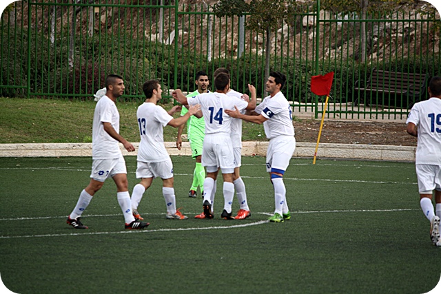 כפיר מלול חוגג רביעייה מול צעירי רהט. (צילום: פזי שינדלר)