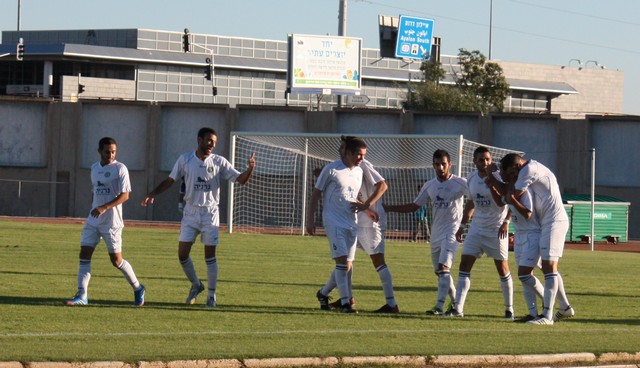 שחקני כפר קאסם חוגגים. גם סירוטקין מבסוט