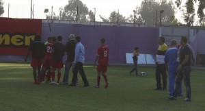 אנשים רבים נכנסו למגרש, ספק אם מדובר באוהדי הקבוצה, שחקני יפו וגם השופטים ברחו מהמקום. משטרה ואנשי אבטחה? אחרי התקרית בשבוע שעבר? הצחקתם את כולם, מה יהיה הסוף!?